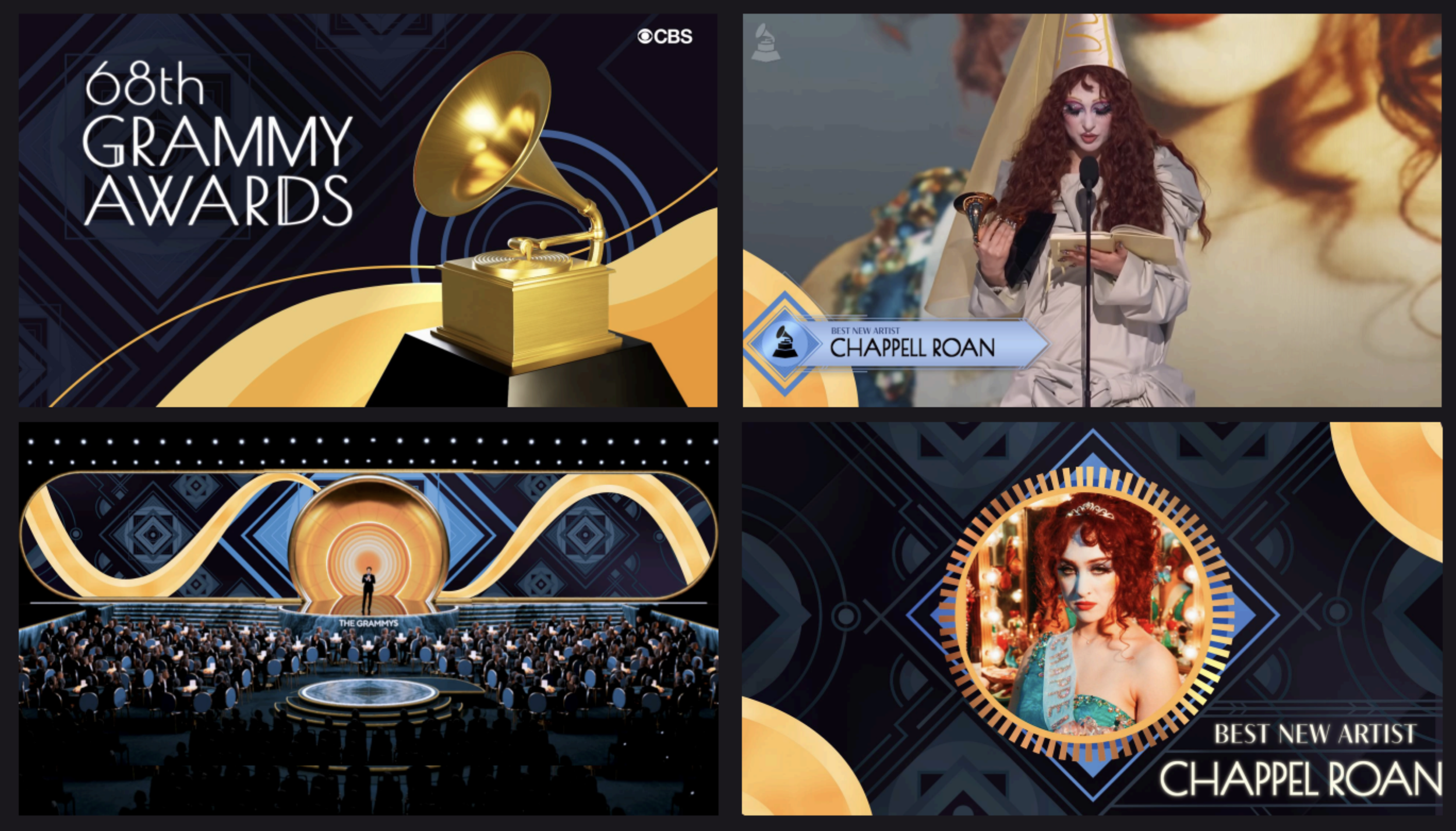 The GRAMMY Awards, presented by The Recording Academy, honor excellence in music and are known as music’s biggest night. The trophy’s gramophone design reflects its original name, the “Gramophone Awards.” From 2010–2020, marketing styles varied widely, while 2020–2024 saw a more unified look featuring bold colors and creative trophy variations.
