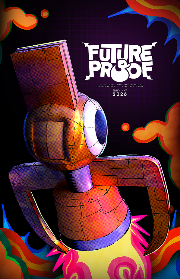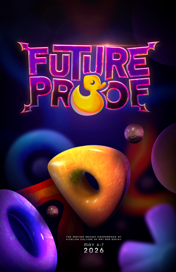 Create a compelling conference opener and cohesive branding package for the 2026 Ringling College FutureProof event that reflects a bold, artistic identity while honoring featured speakers and donors